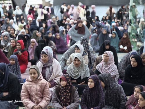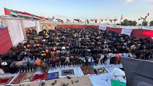 وتجمّع آلاف المصلين في الساحات المفتوحة والأحياء المدمّرة، حيث اصطفوا بين الأنقاض لأداء الصلاة، في وقت أقيمت فيه صلوات أخرى داخل مخيمات النزوح، بعدما افترش المواطنون الأرض بين الخيام في ظل ظروف إنسانية بالغة القسوة، وغياب أدنى مقومات الحياة الأساسية.