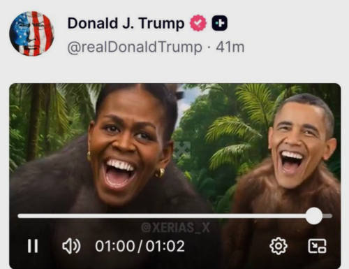 نافذة- نشر الرئيس الأمريكي دونالد ترامب على منصته "ثروت"، مقطع فيديو يصور الرئيس الأسبق باراك أوباما وزوجته ميشيل على شكل قردين، ما أثار استنكارا واسعا من شخصيات ديمقراطية، قبل حذفه  لاحقًا والادعاء لاحقا بانه نشر عن طريق الخطأ.