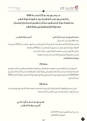 بنود الإتفاق المبرم بين وزارتي العمل القطرية والفلسطينية